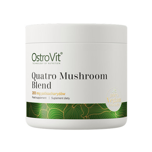 Az OstroVit Quatro Mushroom Blend Vege négy különböző gomba - reishi, oroszlánsörény, cordyceps és chaga - kivonatainak egyedülálló kombinációja. Kényelmes por formájában kapható készítmény, olyan emberek számára készült, akiknek fontos, hogy étrendjüket természetes, értékes összetevőkkel egészítsék ki.